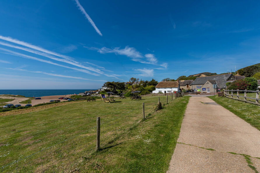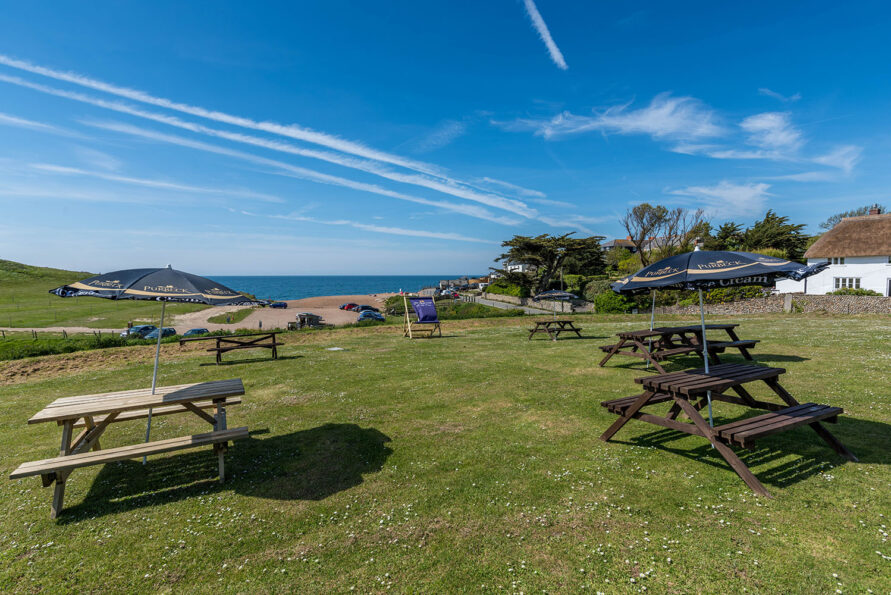 The picnic area at Golden Cap Holiday Park is located just 150 yards from Seatown Beach and enjoys great views out to sea. It’s a spacious grass area on the hillside, with picnic benches available to enjoy a drink, an ice cream or just the sea view! There is also our giant deckchair, which makes for a fantastic holiday selfie with the beach behind.